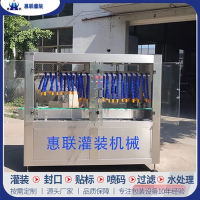 青州市惠聯(lián)灌裝機械有限公司是一家集生產(chǎn)研發(fā)、銷售、服務(wù)于一體的液體灌裝成套設(shè)備生產(chǎn)企業(yè),可根據(jù)廠家要求設(shè)計合理液體灌裝生產(chǎn)線,為用戶提供技術(shù)咨詢、設(shè)計工藝、場區(qū)平面布置、工藝改造、設(shè)備安裝調(diào)試等完善服務(wù)。 公司生產(chǎn)制造各種類型液體灌裝機、過濾機,水處理設(shè)備及液體灌裝成套設(shè)備。主要產(chǎn)品有:白酒、葡萄酒、黃酒等酒水灌裝機、食用油、機油、潤滑油等油類灌裝機、醬油醋、老抽、生抽等調(diào)味品灌裝機、防凍液、玻璃水灌裝機、酒精、84消毒液灌裝機、車用尿素灌裝機、口服液灌裝機、洗滌劑灌裝機等多種液體、膏體灌裝設(shè)備,全自動/半自動灌裝機型號多,規(guī)格全,洗瓶機、瓶子封口機、打塞機、熱縮機、瓶子烘干機、貼標(biāo)機、噴碼機、輸送線、裝箱機、水處理設(shè)備等全套生產(chǎn)線相關(guān)配套設(shè)備齊全,自產(chǎn)自銷,一站式購齊,售后無憂。